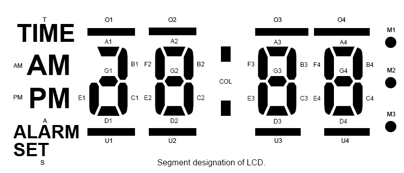 You do not have to use all the buttons and switches allowed—in fact, using fewer of these parts means a cheaper alarm clock. You are also not required to make use of all the LCD elements provided.
