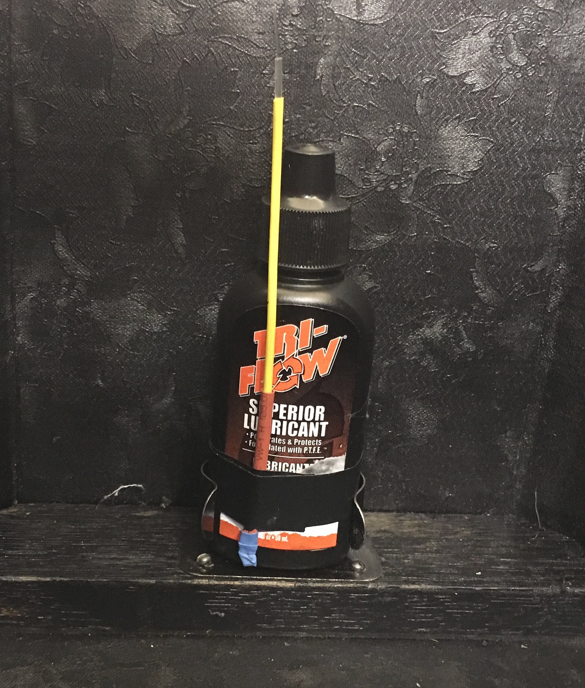 The oil can clip holds on snugly to a bottle of Tri-Flow oil.