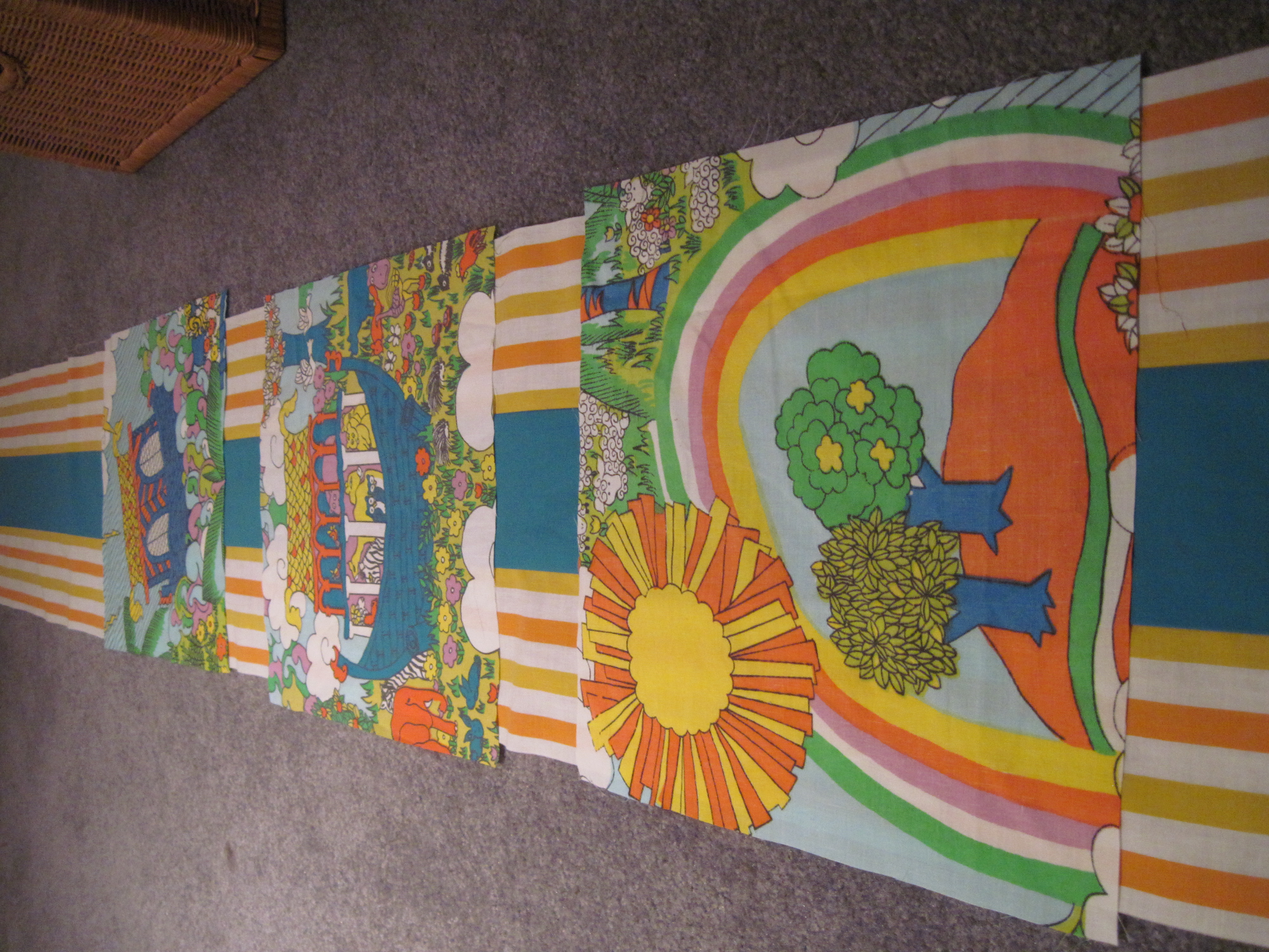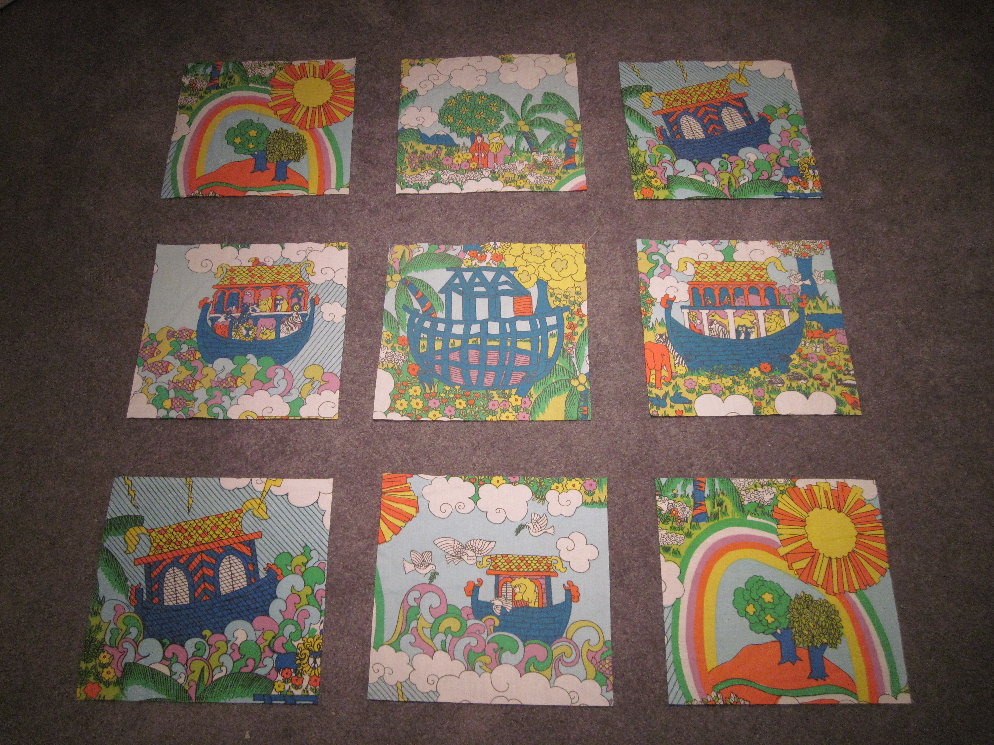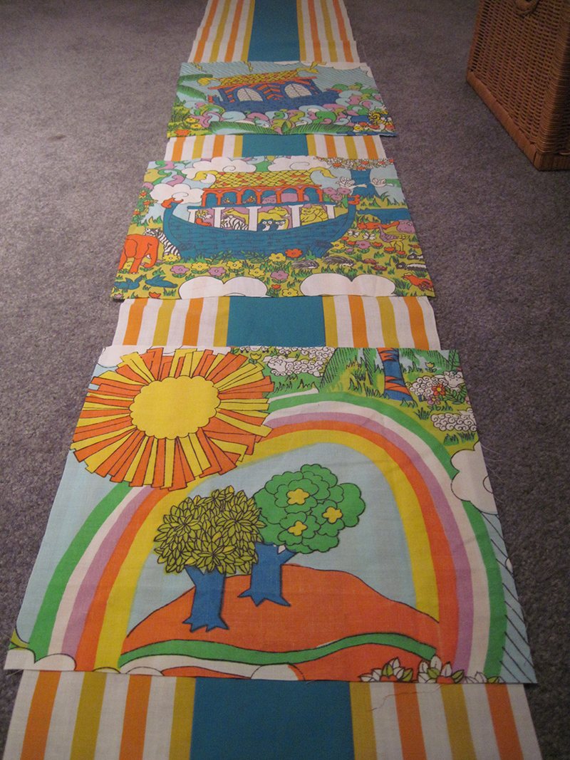 I sourced the sheets from eBay and thrift stores. I started with some choosy cutting of the Noah's ark pattern:
