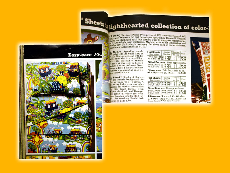 When my brother and I were growing up, we—and pretty much everyone we knew—had colorful Perma-Prest bedsheets from Sears, Roebuck, & Company. They looked like this: