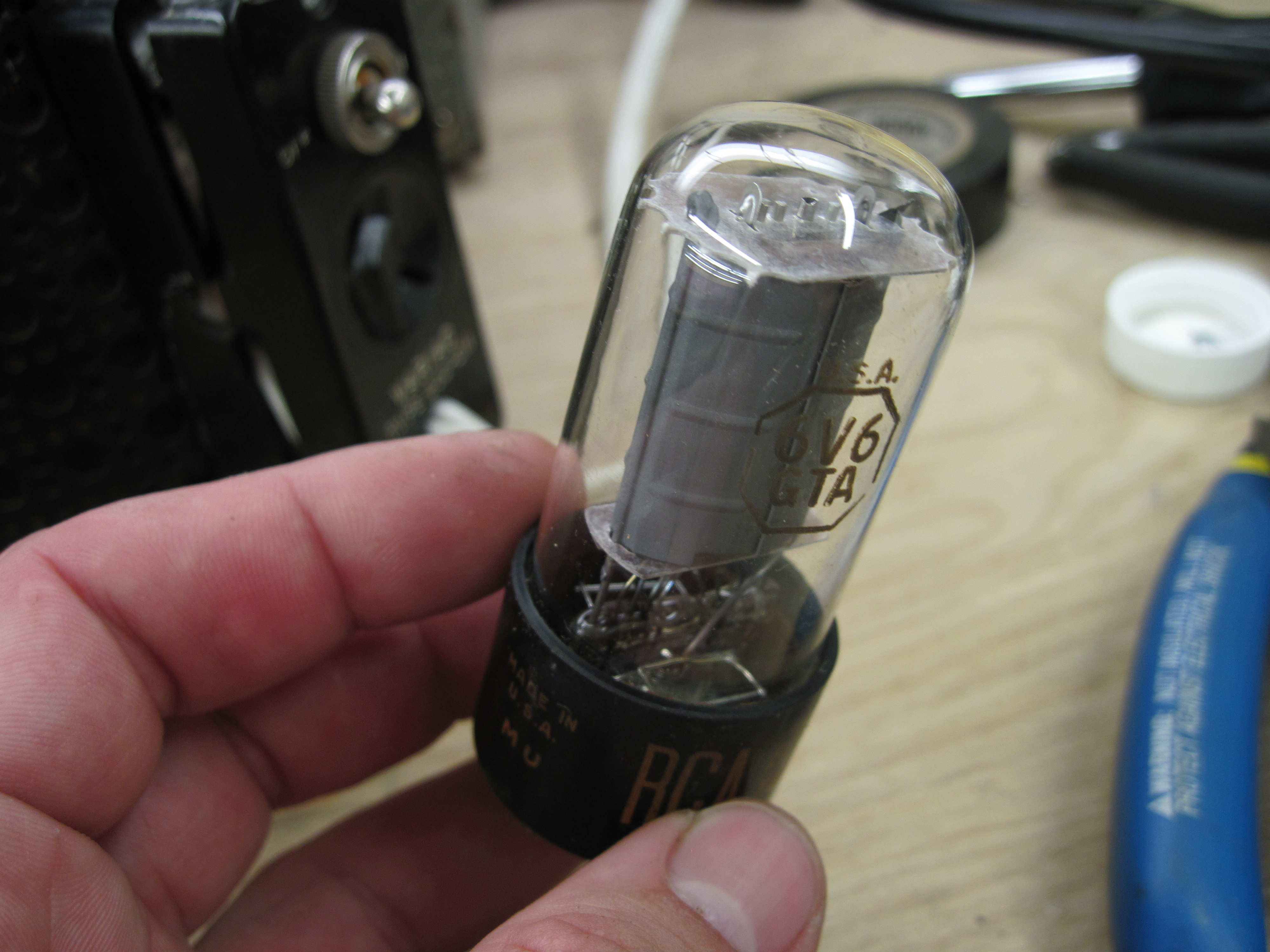 The circuit is simple: a 5Y3 rectifier tube, a 12AX7 tube for preamp, and a 6V6G for output. Overall power is 5 about watts.
