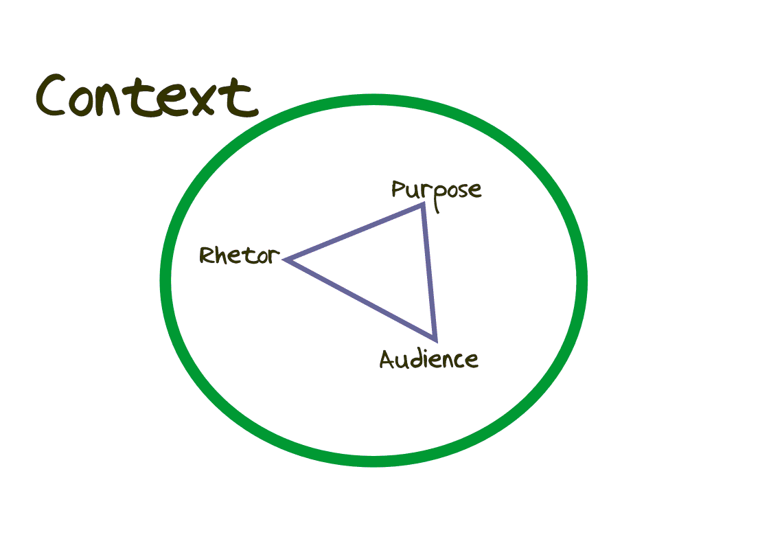 Now, what if I could go to my boss and say that the vast majority of people in my line of work were making $1 million a year, and I should be making that much as well? Or, by contrast, what if I lived in a culture where it was considered shameful to ask your boss for a raise? These things would go beyond just the immediate players in the rhetorical triangle, and extend to something that surrounds all of it: context.